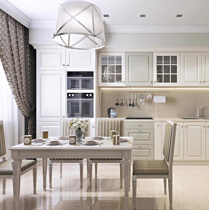 Для кухни следует выбирать практичные материалы, которые хорошо переносят влажность, перепады температуры, легко очищаются от загрязнений и выдерживают механические нагрузки. Выбирать вы можете в зависимости от бюджета - более дорогие или бюджетные материалы. Наш специалист проконсультирует вас.